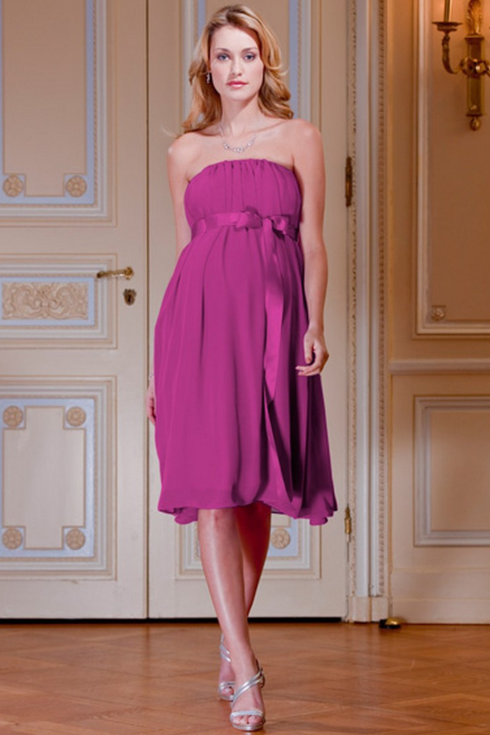 Robe en mousseline, délicate et fine. Elle est légèrement évasée en sous de la poitrine vous avez une élégante ceinture en satin,